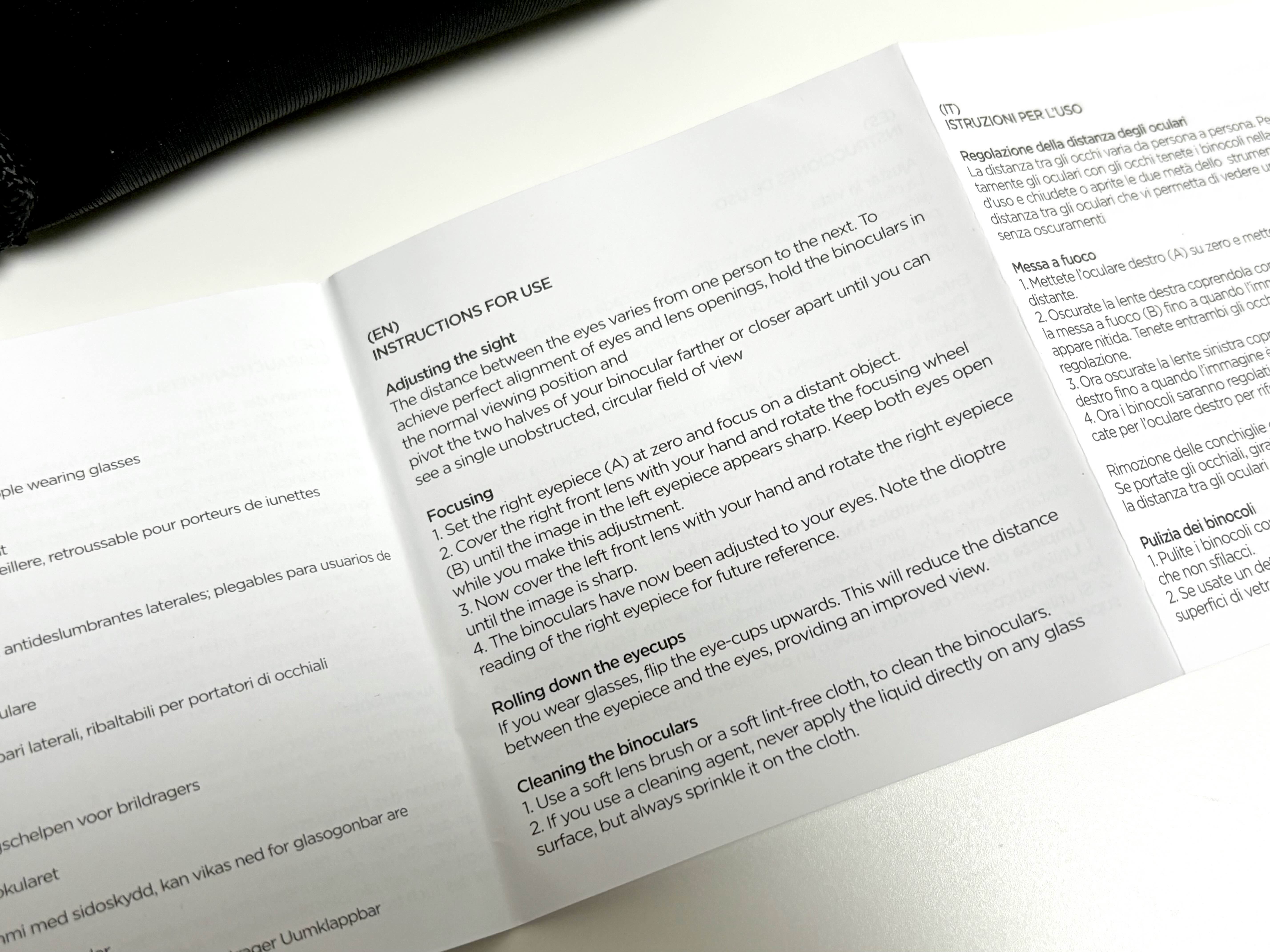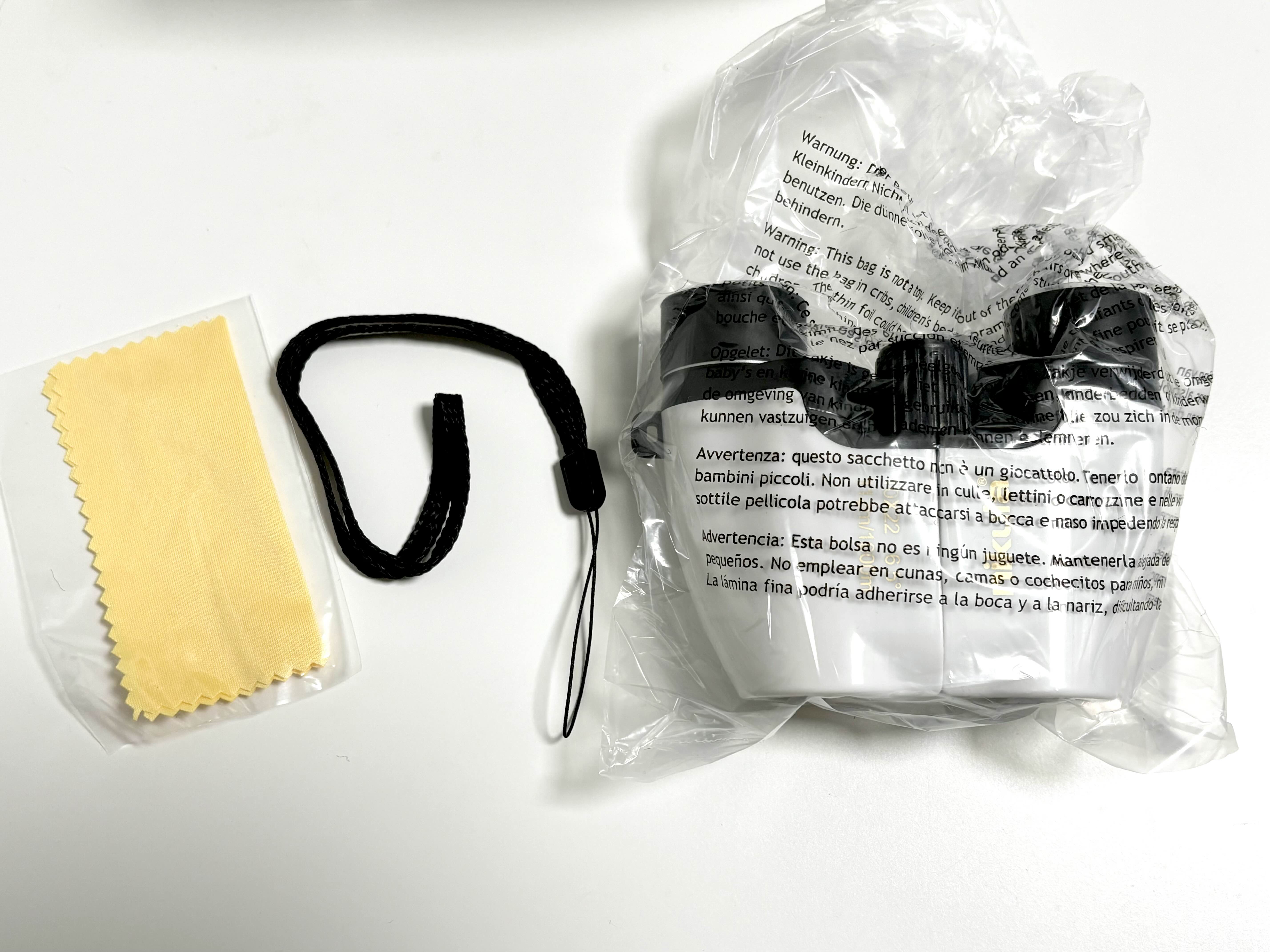 기본 구성품은 렌즈닦이, 손목 스트랩, 오페라 글라스(본품), 설명서, 파우치입니다.