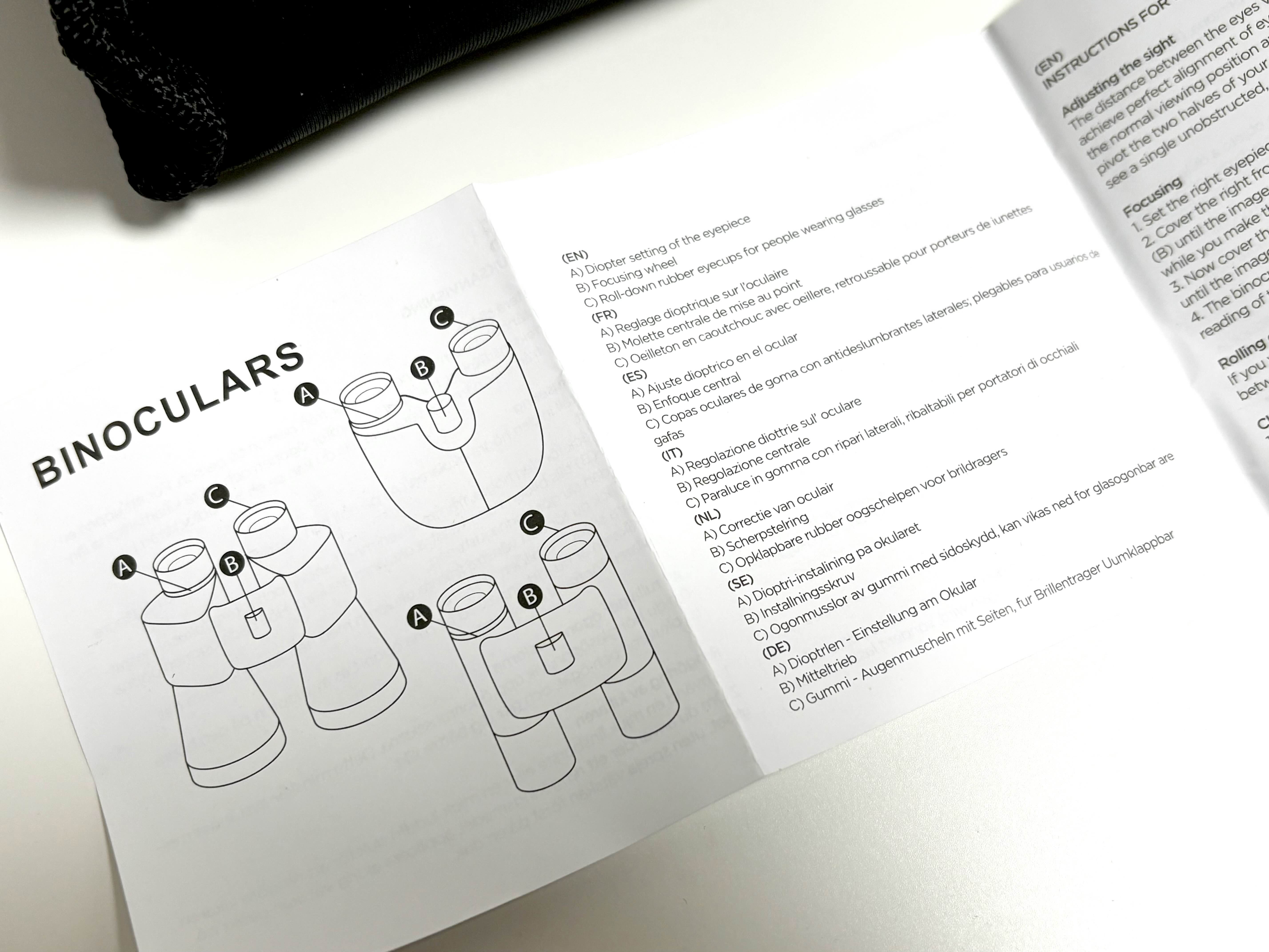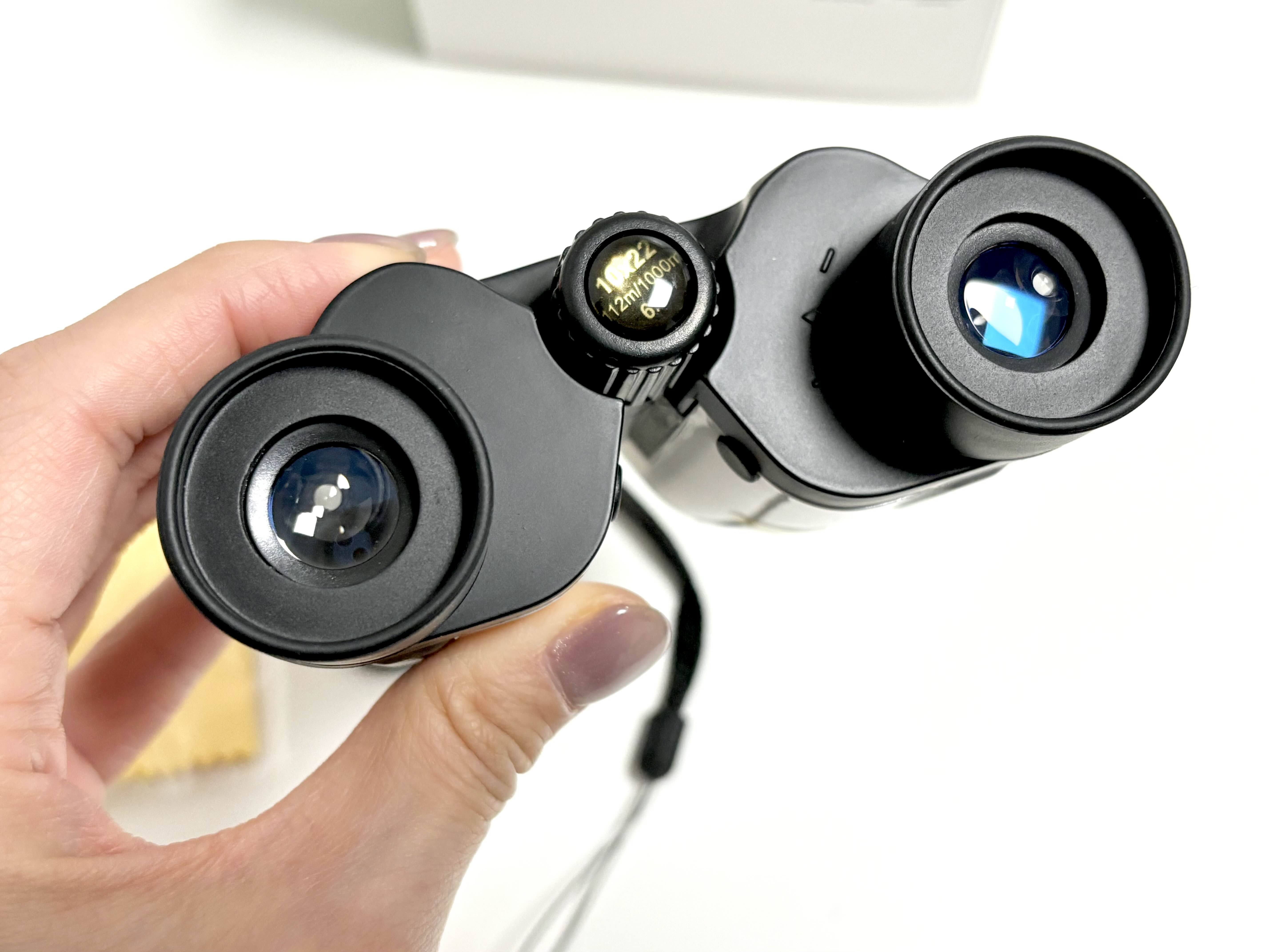 2. 먼저 눈을 대고 왼쪽 렌즈를 보면서 멀리 본 상태에서 가운데 부분 휠을 돌려가며 초점을 맞춥니다.