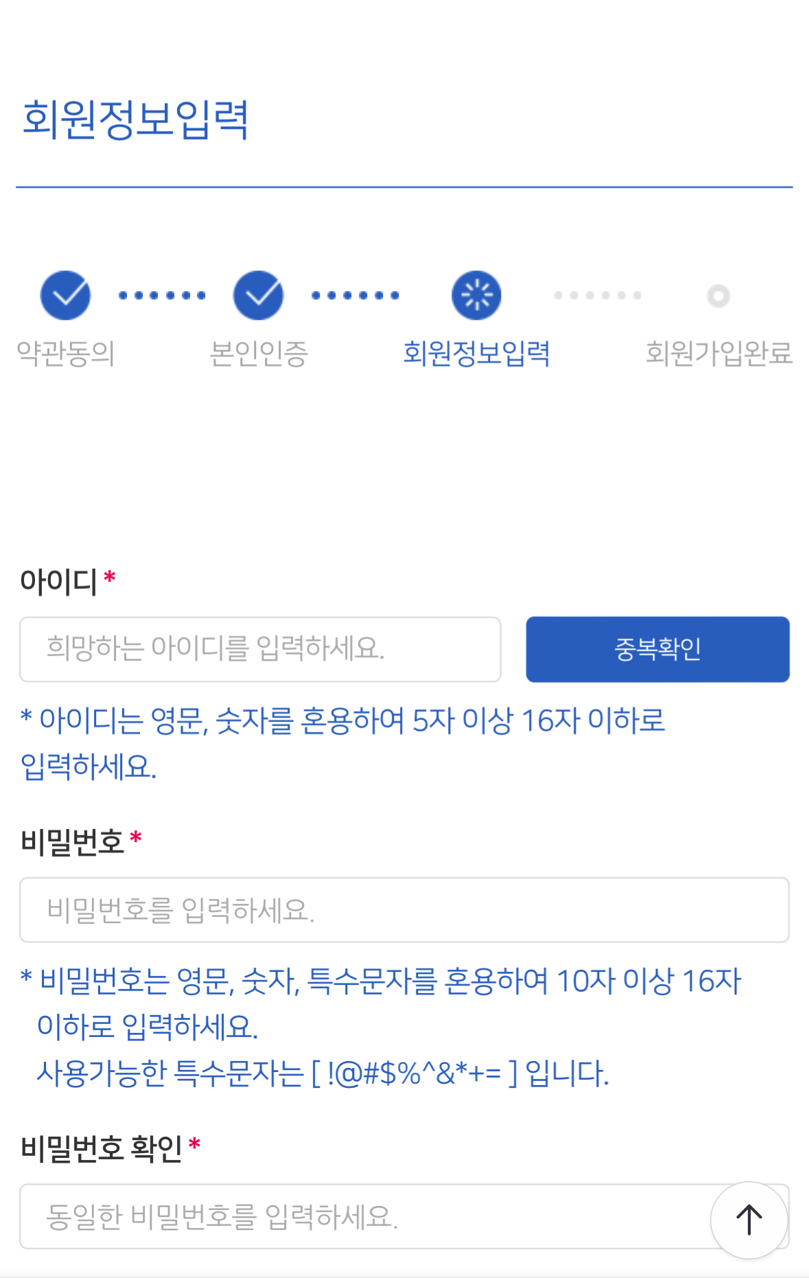 4. 회원정보(아이디, 비밀번로)를 입력하세요