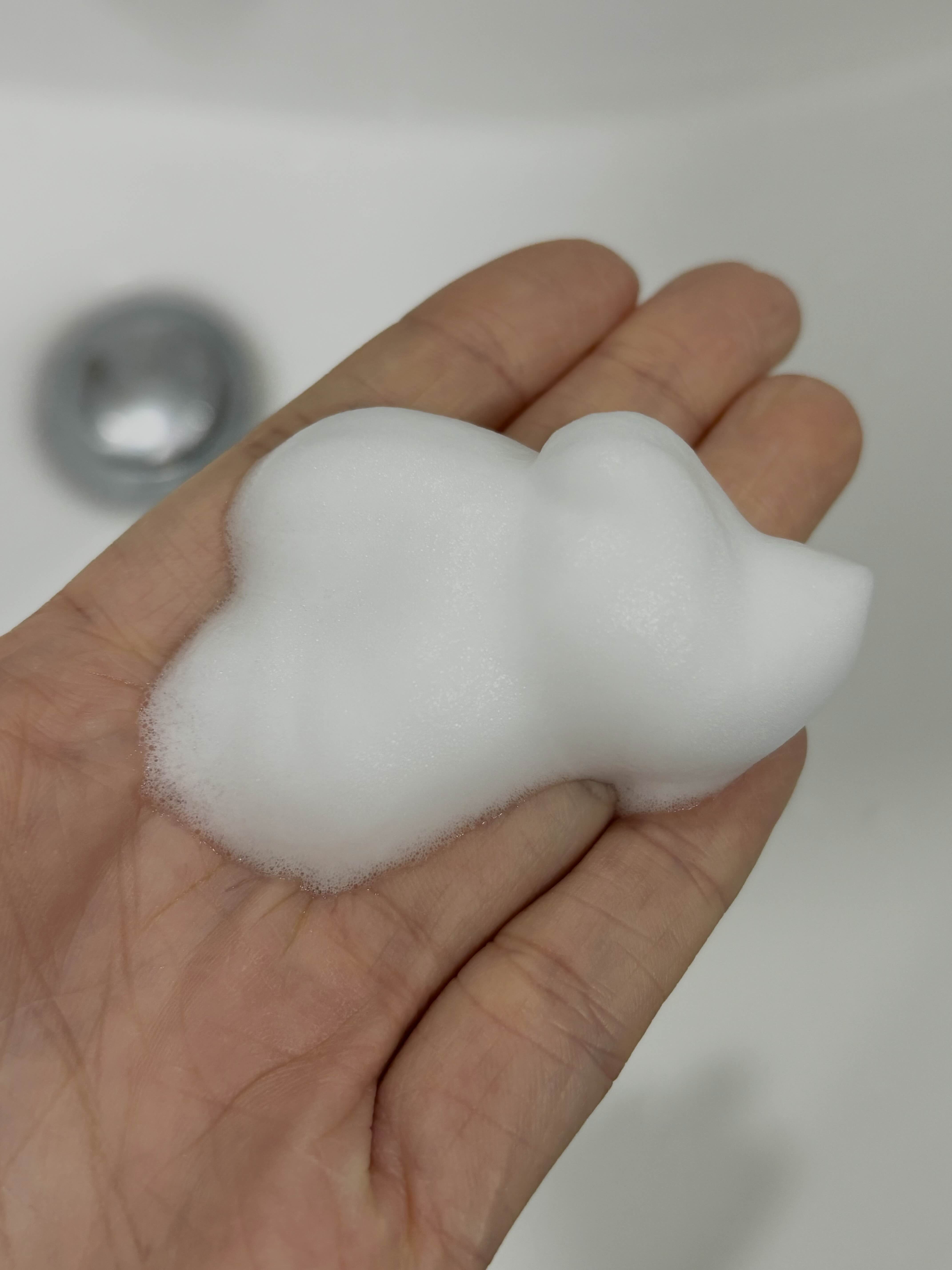 신기하게 이렇게 쫀쫀하고 풍성한 거품이 만들어집니다. 처음 이걸 사보고 정말 될까 싶었는데 클렌징워터가 폼무스 타임이 되어 나오는 걸 보고 너무 신기했어요.