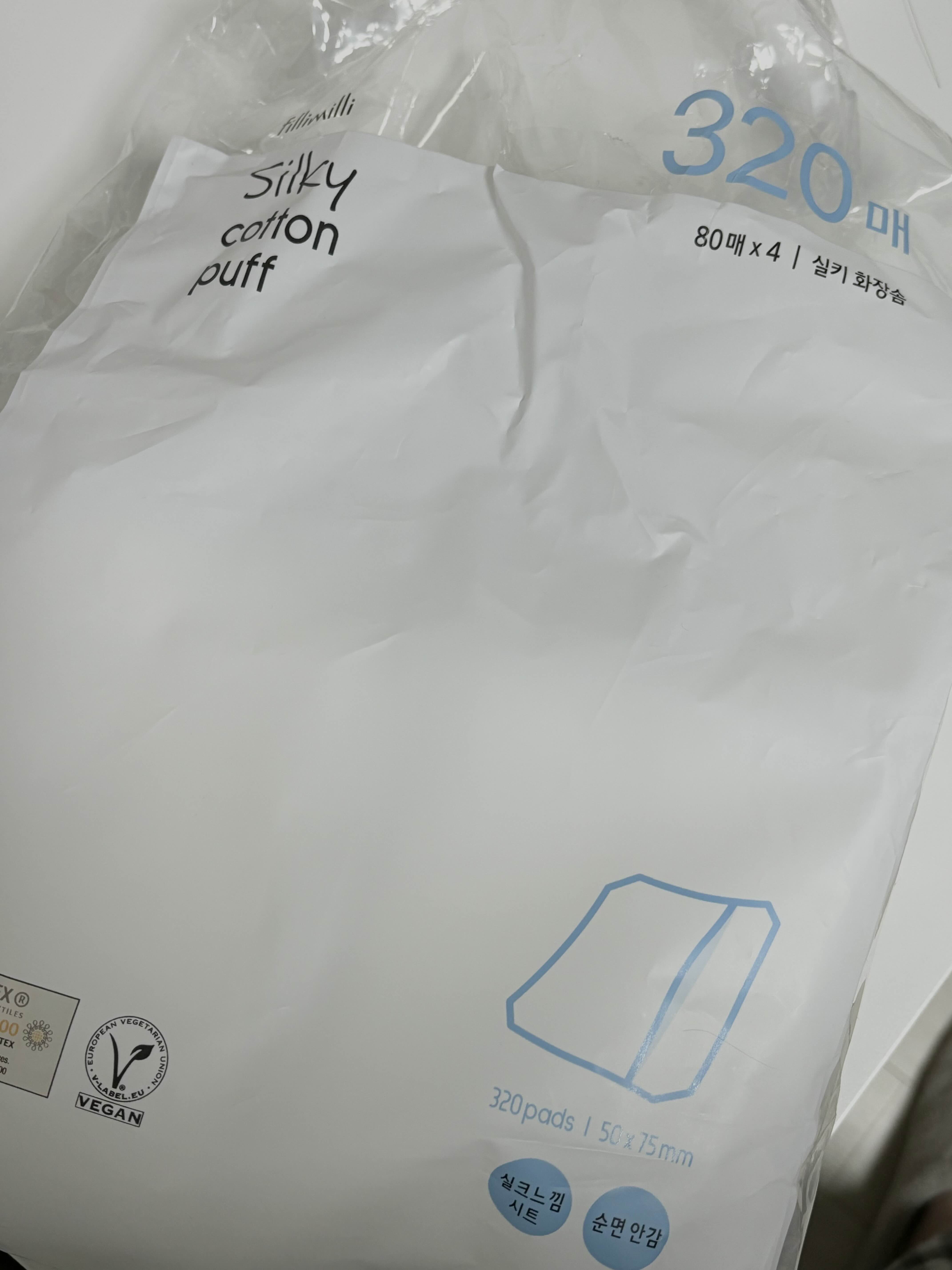 바로 필리밀리 실키 코튼 퍼프입니다. 저는 먼저 작은 거를 사용해 보고 마음에 들어서 대용량으로 구입해서 사용하고 있습니다. 20살 때부터 유명하다는 화장솜 다 써보았는데 클렌징에는 이 화장솜이 가장 자극 없이 좋은 것 같아요.