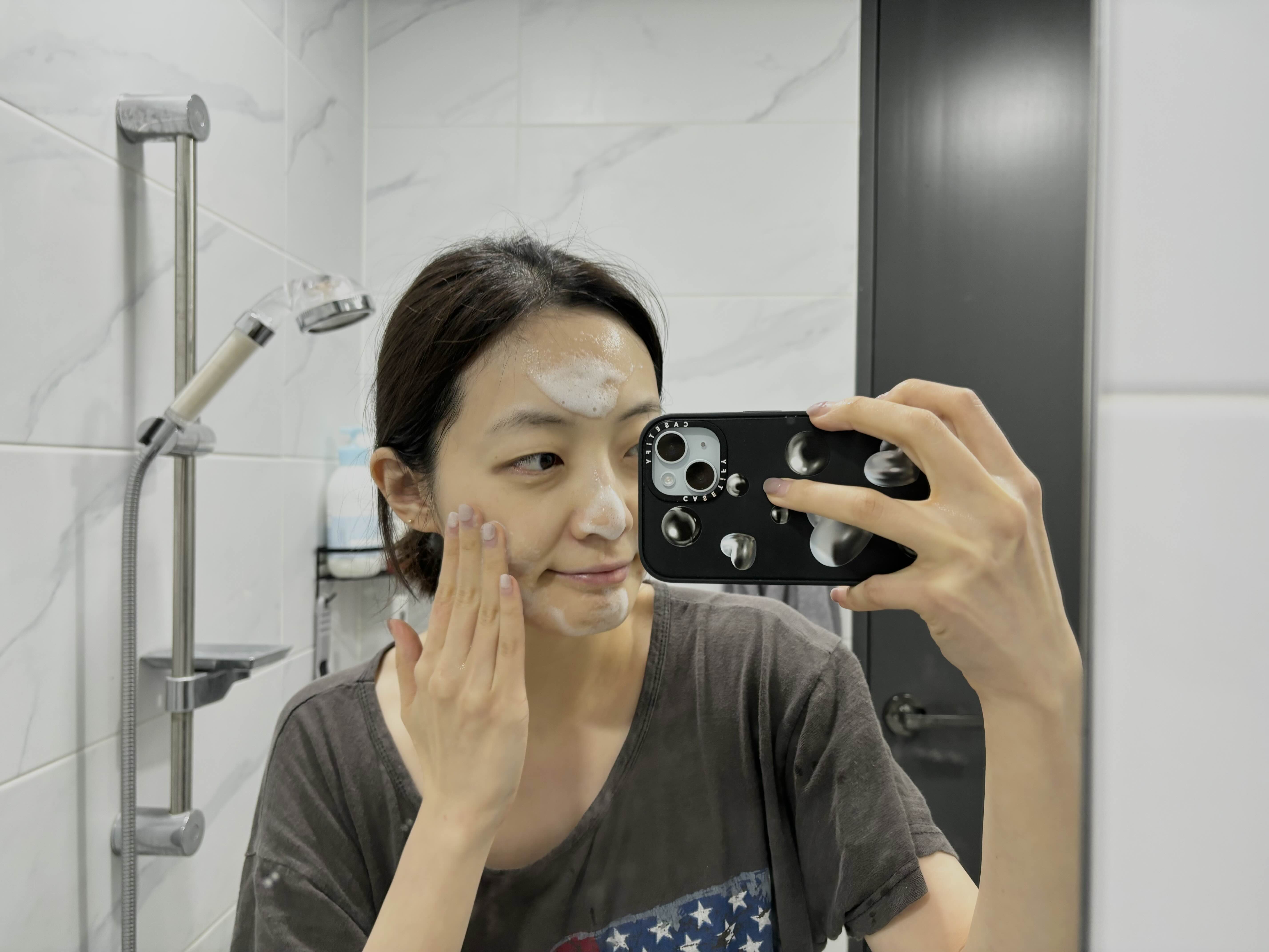 얼굴에 올리고 양손으로 전체적으로 롤링해 주시고 물세안 해주시면 됩니다.