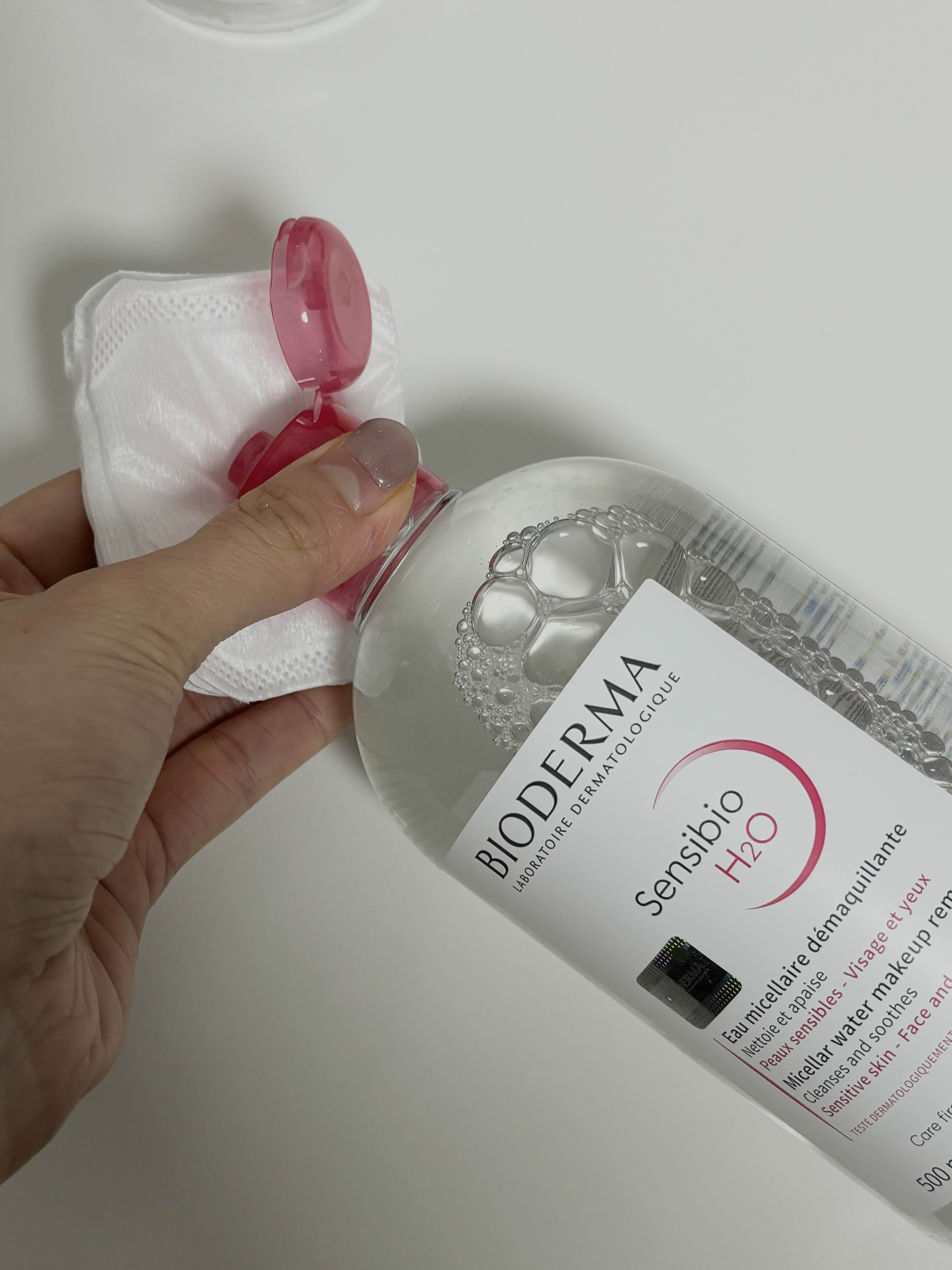 충분히 바이오더마 클렌징워터를 적신 화장솜을 준비했습니다.