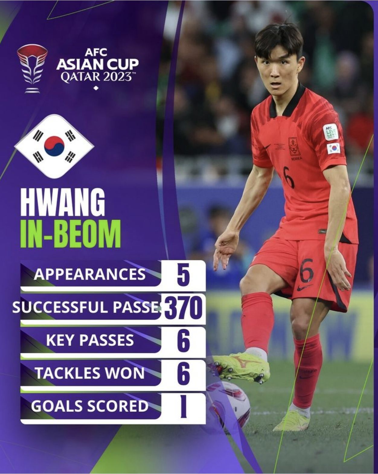 "또한 이번 2024 카타르 아시안컵에서 5경기 중 4경기에서 승리를 위해 치열하게 올라왔으나 이 토너먼트를 통해 많이 성장했습니다. 점점 자신감이 생기고, 4강까지 오르게 되면서 자신감은 점점 더 상승하였습니다. 게다가 대한민국 국민들의 지지를 받으며 긍정적인 분위기입니다. 한 팀이 토너먼트 경기에 참가하기 위해서 충분한 정신력이 필요하고 긴 마라톤 같은 대결을 대비해야 합니다. 이제 우리는 강하게 마무리하고 금을 확보하기만 하면 됩니다."라고 우승을 향한 강한 의지를 보여주었습니다.
