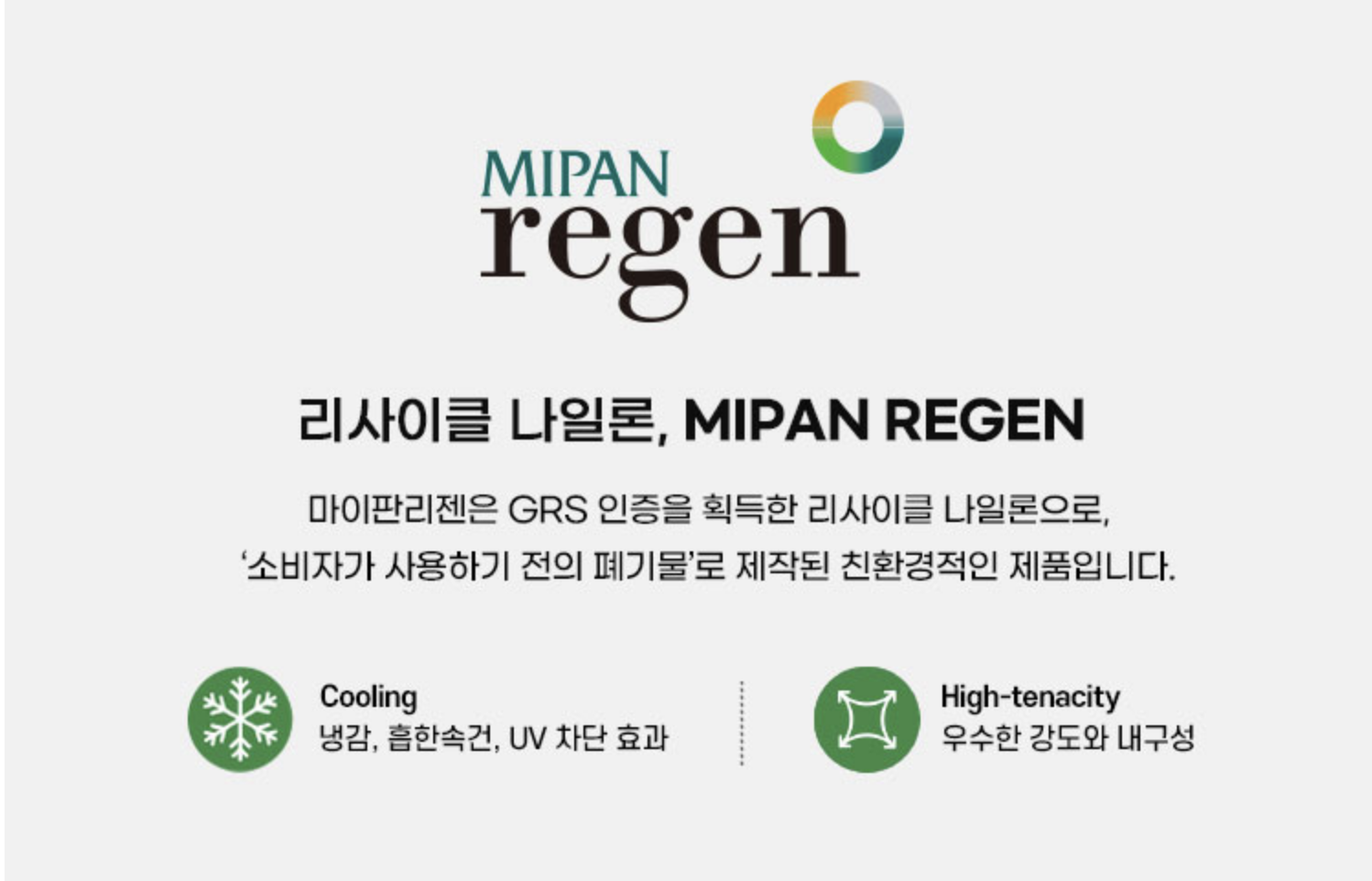 효성tnc의 "MIPAN REGEN" 나일론 소재 사용